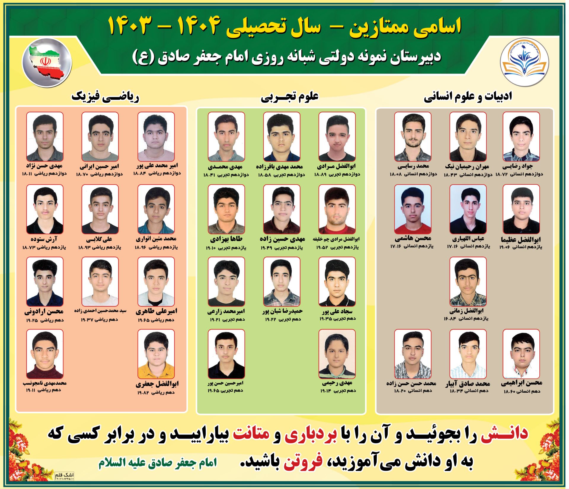 کلیدواژه ها: اسامی ممتازین سال تحصیلی 1404-1403